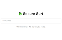 Para añadir insulto al daño, el secuestrador en cuestión también modifica el los ajustes previamente establecidos de los accesos directos de aplicaciones aleatorias. Este delito menor provoca que el navegador predeterminado de la víctima inicie automáticamente y muestre secure-surf.net cada vez que se abra un programa de Windows haciendo doble clic en un atajo mutilado. A primera vista, la página de destino de Secure Surf está diseñada de acuerdo con una maqueta estándar de un proveedor de búsqueda. La parte más destacada acerca de ella es el cuadro de búsqueda, con una inscripción “El motor de búsqueda que respeta su privacidad” justo debajo de él. La misma frase también se proporciona en el título del sitio. Tal declaración es absolutamente irónica porque el adware en general y los secuestradores de navegadores en particular definitivamente no se crean con el aislamiento en mente, independientemente de quién esté detrás de estas plagas. Secure Surf, por ejemplo, mantiene un registro de todas las búsquedas que el usuario atormentado ejecuta, su historial web y sus páginas marcadas. Estos datos pueden ser vendidos a terceros, por lo que la aplicación potencialmente no deseada no es el mejor amigo de la privacidad.