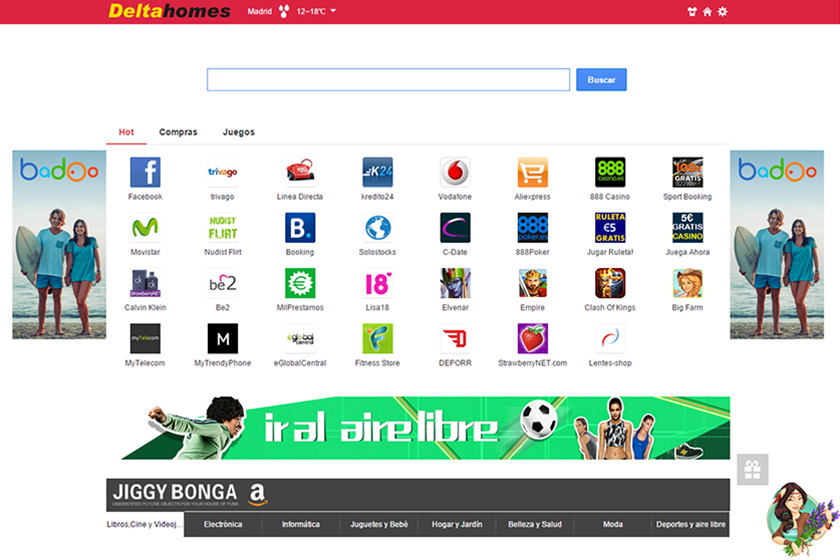 Delta Homes modifica la configuración siguiente después de una infiltración exitosa en un sistema: la configuración de acceso directo del navegador (el parámetro Objetivo), la página de inicio, página de nueva pestaña, y el motor de búsqueda predeterminado. Es bastante fácil predecir lo que significan estos cambios para la mundana navegación en la web de la víctima. La página de destino delta-homes.com es donde el usuario siempre termina. El sitio cuenta con un buen número de anuncios en él, algunos están agrupados por lugares de interés, compras y categorías de Juegos. Pero ya que está diseñado como un proveedor de búsqueda de algún tipo, al parecer, anima a la gente a entrar en búsqueda de palabras clave y mirarlas. Ahí es donde otra cosa interesante sucede, es decir, el redireccionamiento a través 22find.com a la URL de searches.globososo.com (titulado Globo SOSO). La última página contiene más anuncios que los resultados de búsqueda normales, lo que explica cómo los fraudes están haciendo dinero.