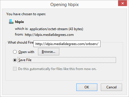 La descarga no deseada se activa a través del siguiente dominio: idpix.media6degrees.com. La URL apropiada es seguida de una cadena extra, que en la mayoría de los casos es ‘/ orbserv / hbpix? PixId = 3715n’. En otras palabras, la cadena de infección involucra secuencias de comandos malignas que provocan un redireccionamiento del tráfico de Internet desde una página normal a la dirección anterior. El proceso de descarga puede ser totalmente imperceptible o manifestarse como un diálogo que ofrece al usuario guardar el archivo hbpix. El diálogo dice que el objeto es una aplicación de 43 bytes ‘/ octeto-secuencia’, es decir, un archivo binario. Tan pronto como la descarga dudosa se ha completado, el virus hbpix se hace cargo de los navegadores web de la víctima. Añade una cookie de seguimiento para realizar una especie de reconocimiento y supervisar los sitios que el usuario visita.
