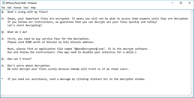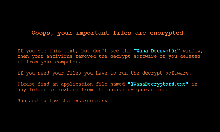 El ransomware cambia los nombres de extensión de archivo afectados a “.WNCRY”, por lo que un archivo infectado se verá como: nombre_original_de_archivo.jpg.WNCRY, por ejemplo. Los archivos cifrados también están marcados por la cadena ¡”WANACRY!” Al principio del archivo.